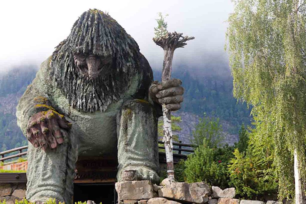 Cel mai mare troll din lume si un stralucitor palat din povesti, inspirate de vechile basme norvegiene, ii intampina pe vizitatori la Hunderfossen.