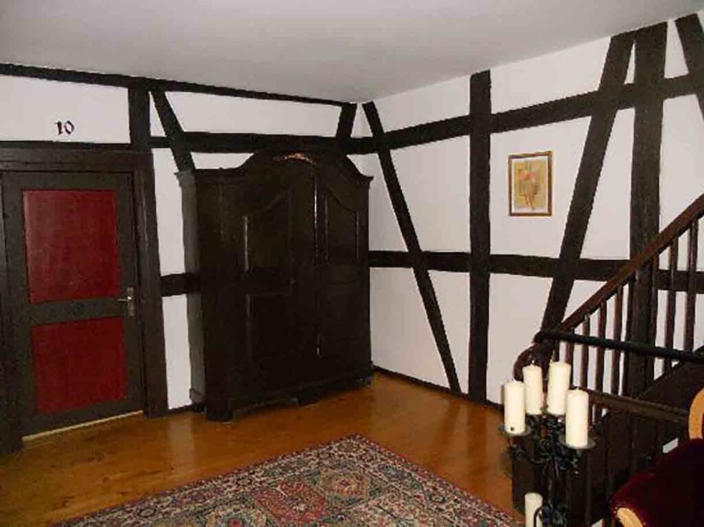 Cladirea dateaza din 1390. Ridicata pe una dintre vechile strazi inguste ale orasului vechi, proprietatea este de importanta istorica. Barne rasucite de stejar sunt expuse la interior si in exteriorul casei cu terasa. Dormitoarele sunt simplu mobilate, dar confortabile.