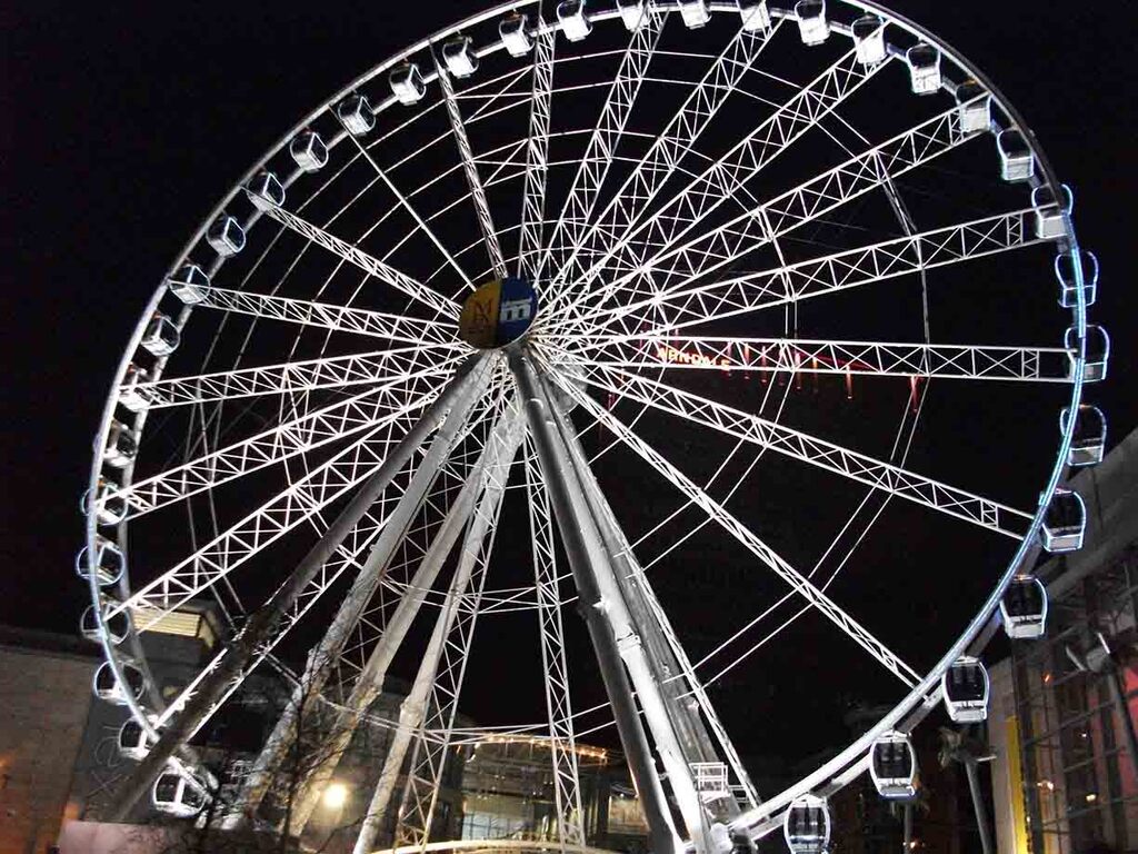 Roata se gaseste in Piata Exchange si ofera o priveliste superba asupra orasului Manchester.