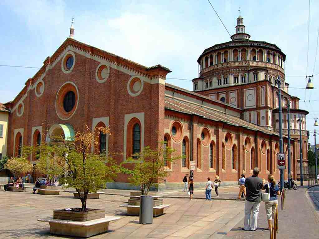 Biserica adaposteste celebra pictura a lui Leonardo da Vinci "Cina cea de Taina", pictata pe unul din pereti din sala de mese, pictura a avut parte de restaurari grosolane, dar si de ghinion: la un momant dat, calugarii rezidenti au spalat o parte a picturii, apoi in cel de-al Doilea Razboi Mondial, o mare parte a cladirii a fost distrusa de o bomba. Astazi, pictura a fost restaurata pentru a-si arata grandoarea initiala.
