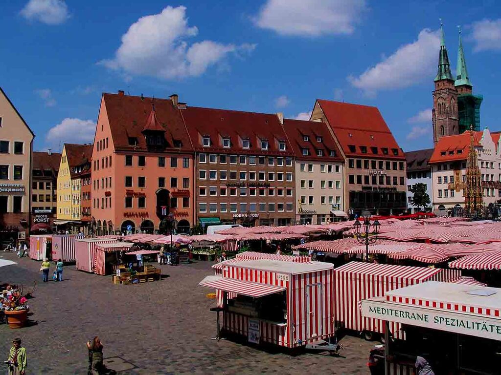 Piata centrala din Nuremberg a fost candva cartierul evreiesc al orasului. Cand locuitorii Ntirnbergului i-au cerut imparatului Carol al IV-lea o piata centrala mare, acesta se gasea intr-o acuta criza financiara si nu avea nici sustinere politica.