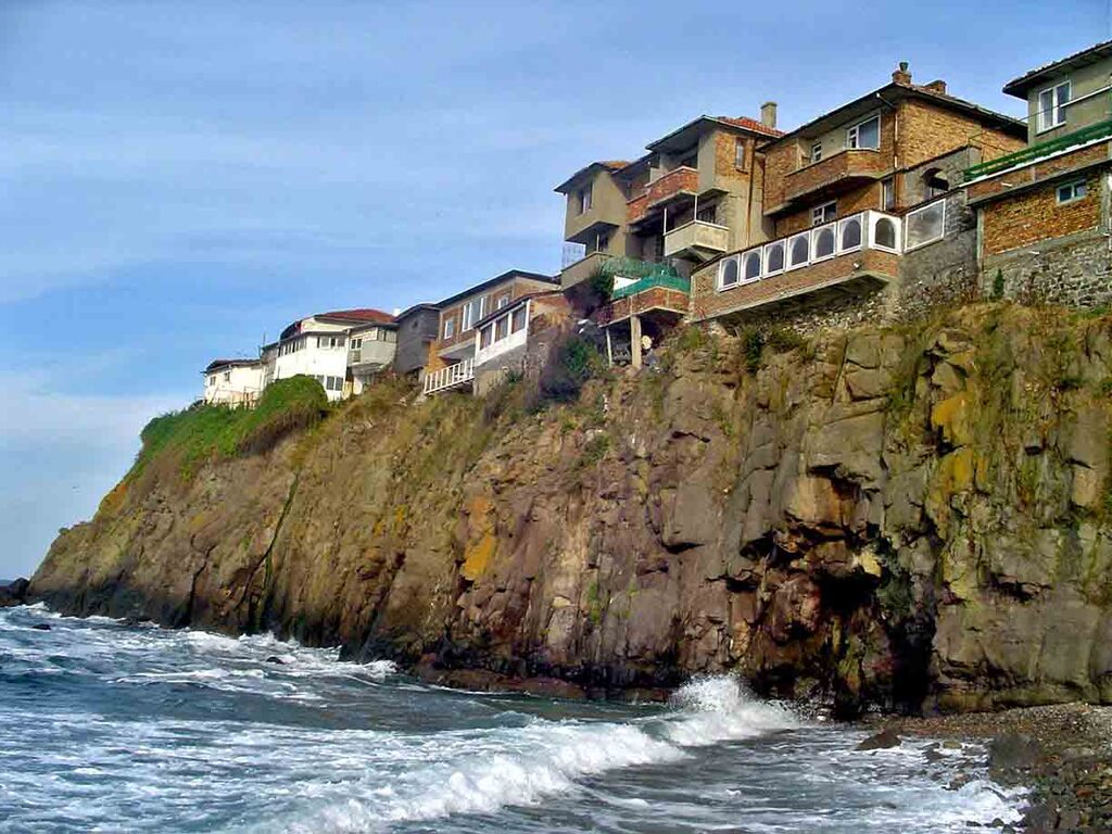 Ca si in alte localitati litorale ale Bulgariei, parterul caselor este din piatra, iar etajul construit din sipci are un aspect fragil.