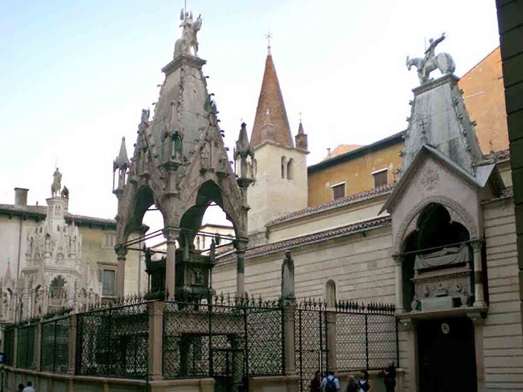 fosta biserica parohiala a familiei Scaligeri, ale caror morminte remarcabile se aliniaza in spatele grilajului de fier. Remarca motivul de scara al grilajului, care se repeta, un joc de cuvinte la numele lui Scaligeri (scala inseamna "scara").